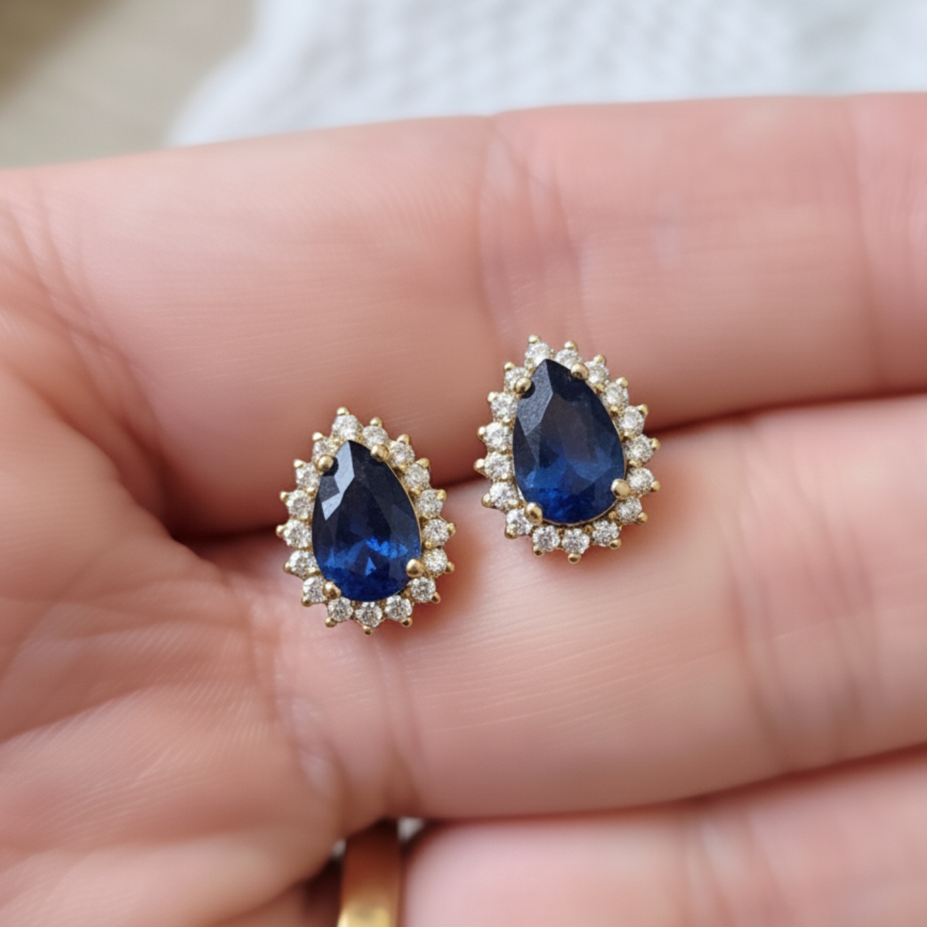 Brincos em Ouro 18k com Safiras Gota e Brilhantes