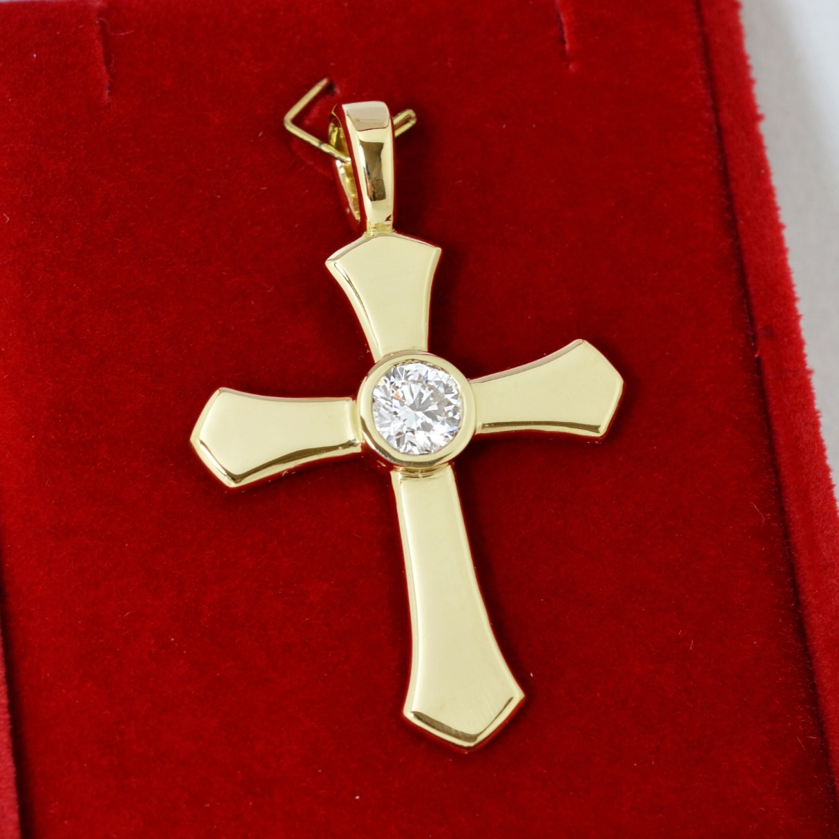Pingente de Cruz em Ouro 18k com Lab Grown Diamond – 1 quilate